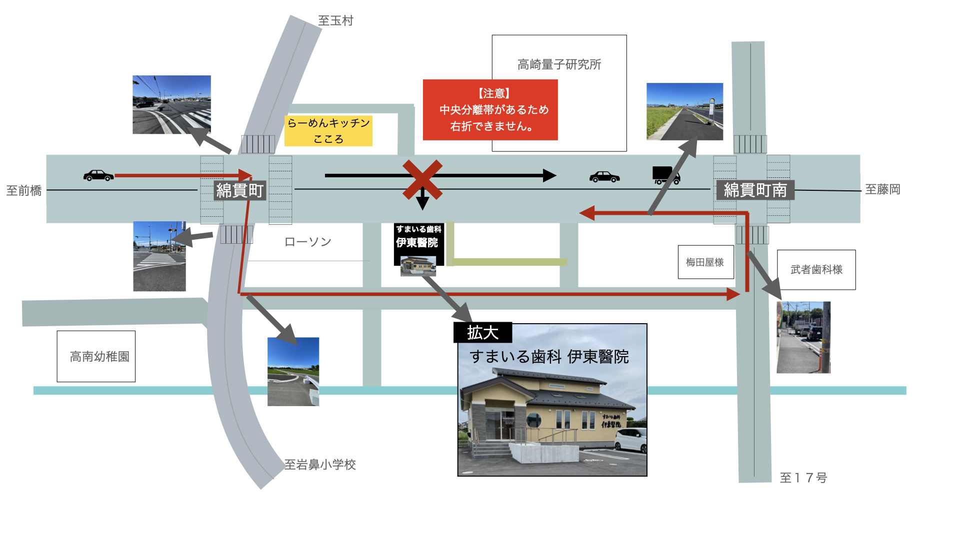 ①綿貫町交差点を右折してください。