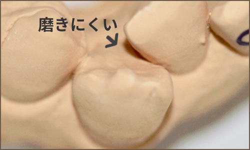 この時に部分矯正でなく、歯に被せ物をして、見た目だけを治した場合は、もともとの歯の位置は引っ込んだ状態ですので、清掃面で問題が生じます。
