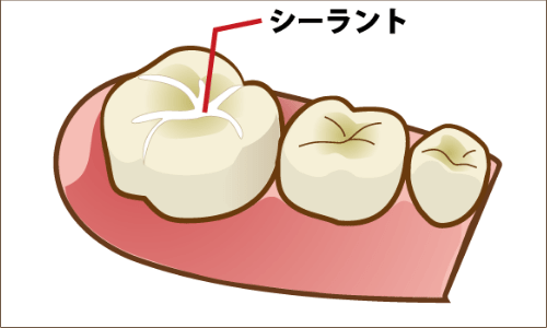 シーラントは歯の小窩裂溝からのむし歯を予防するために、主に奥歯の溝にレジン系の詰め物をする処置を言います。歯は生え始めてから、唾液を介して石灰化が促進されますので生え始めの2年間くらいは、歯の表面のエナメル質が未成熟で、虫歯になりやすいと言われています。