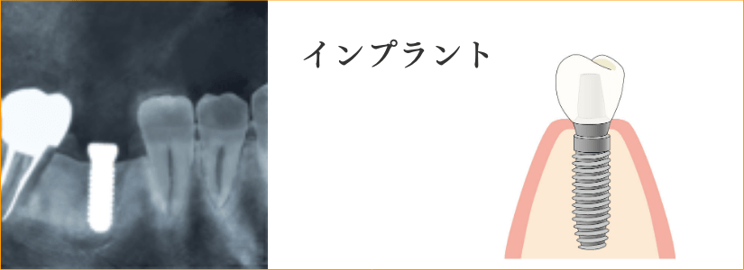 失った歯の部分に、棒状のチタン合金を骨に埋めることによって、骨に直接維持を求めた人工の歯(人工歯根)のことを言います。