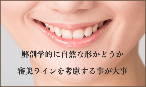 前歯の場合は顔の形との相似性などを考慮すると共に、下の歯を前後左右に動かした時の運動のガイドとしての機能的な役割を満たしているかなどもチェックします。また、口唇の審美ラインも考慮します。