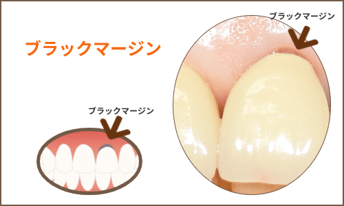 ただ、注意しなければいけないのは、せっかくこのように丁寧に形成しても被せ物に金属を使用してしまうと、金属がイオン化して歯肉を黒ずんだ状態にしたり、歯肉が下がった場合にブラックマージンとなって見苦しい状態になるということです。